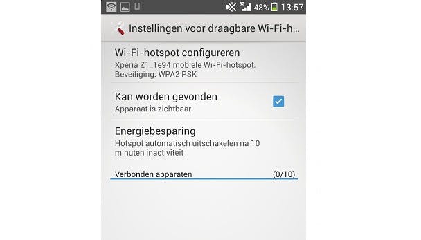 Hier krijg je de keuze de Persoonlijke hotspot aan te zetten: