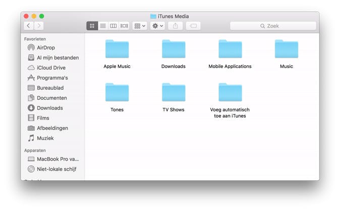 Je kunt een snelkoppeling van de map op bijvoorbeeld je Bureaublad plaatsen om snel toegang te krijgen tot de map. Hou hiervoor Alt(Option) + Command ingedrukt wanneer je de map naar je bureaublad sleept. Als je bestanden naar deze snelkoppeling sleept, worden ze ook automatisch aan iTunes toegevoegd.