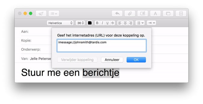 Hoe je een link naar een wegpagina kunt toevoegen aan een mailtje is bekend: via Wijzig > Voeg koppeling toe kun je een stuk tekst naar een bepaalde url laten linken. Met http:// kun je linken naar een website. http://macworld.nl opent macworld.nl in je browser. Maar wist je dat je ook naar bepaalde apps of zelfs acties kunt linken?