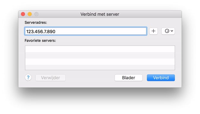 In tegenstelling tot vroeger, hoef je nu dus niet meer te beginnen met smb:// (als je een AFP verbinding wilt maken, begin je het adres simpelweg met afp://).