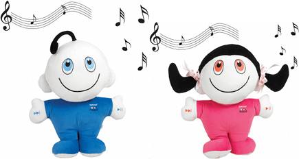 De Toby en Lilly-knuffels met ingebouwde mp3-speler van Topcom zijn niet alleen schattig, maar ook erg gebruiksvriendelijk. Door in de handjes en voetjes van de knuffels te knijpen kan uw zoon of dochter het volume aanpassen of naar een volgend nummer navigeren. Standaard is er instrumentale muziek op het geheugen van 512 MB opgeslagen, maar u kunt via usb uiteraard de favoriete hits van uw kind toevoegen. Niet geheel onbelangrijk: Toby en Lily kunnen zonder probleem worden gewassen als uw kind wat onvoorzichtig is geweest met limonade of waterverf. De adviesprijs van beide knuffelmuziekspelers bedraagt 75 euro.