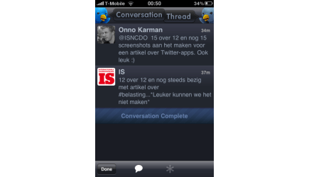 Twitterrific maakt een 'gesprek' tussen mensen overzichtelijk.