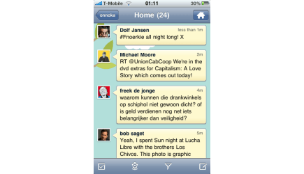 Hoewel Echofon op elk platform te gebruiken is via de extensie voor Firefox, is het toch vooral een client die zich richt op de Apple-gebruiker. Er zijn namelijk zowel voor Apple Mac OS X als voor de iPhone apps. De iPhone app is gratis maar heeft dan wel advertenties. Vanuit de app zelf kunt u Echofon echter upgraden naar Pro, zodat de app advertentievrij wordt. Daarbij krijgt u meteen ook push-notificatie, dus aan u gerichte tweets en direct messages (DM) verschijnen direct. De interface is overzichtelijk en er zijn handige features als voorvertoningen van geotags en foto's als die getweet worden. Een ander handigheidje is dat Twiiternamen automatisch aangevuld worden als u een paar karakters invult. Wanneer u Echofon op zowel iPhone als Mac of via Firefox gebruikt, dan worden de ongelezen berichten overal gesynchroniseerd.