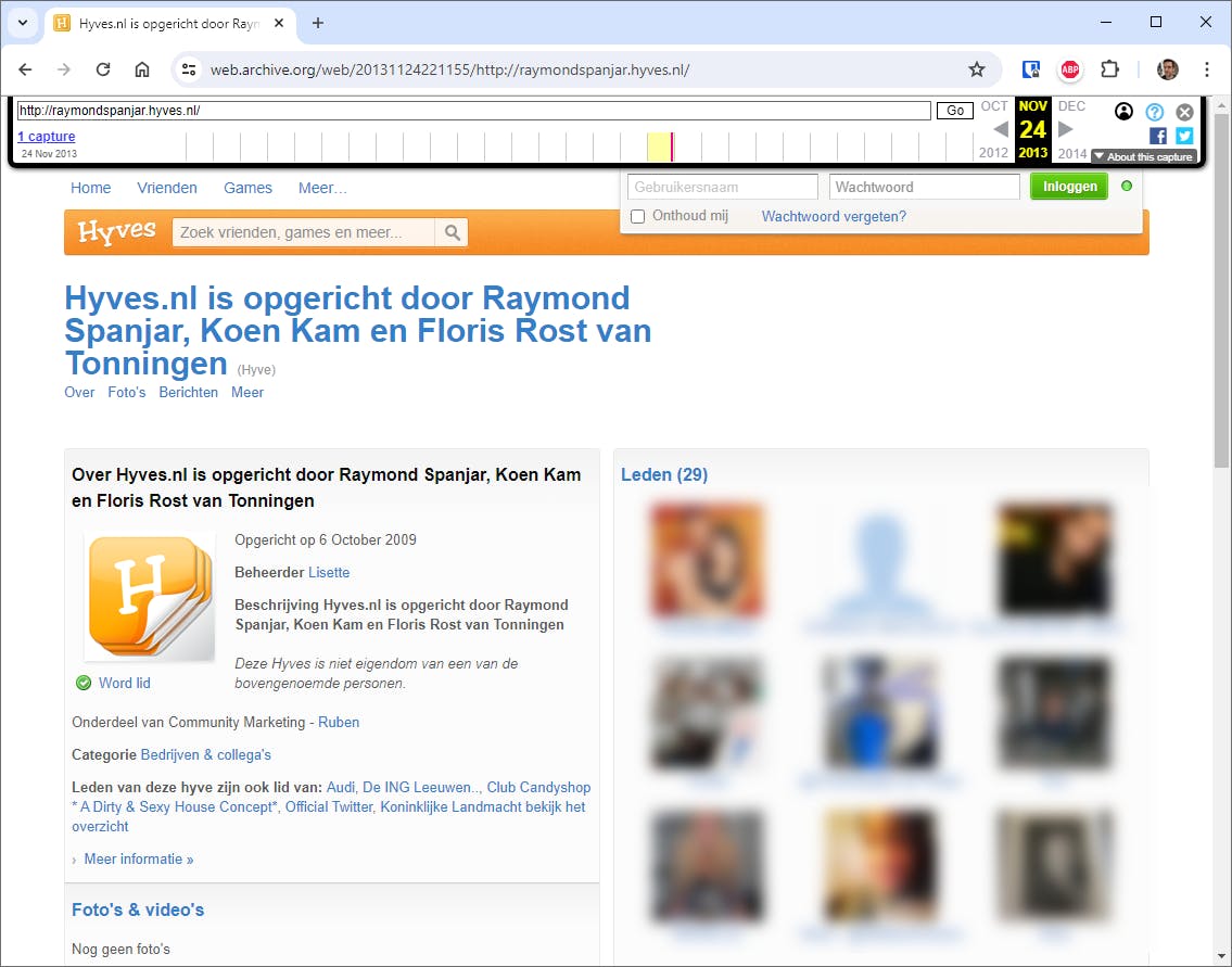 Denk je weleens met weemoed terug aan jouw Hyves-profiel? Mogelijk kun je dat nog terugzien! De dienst Wayback Machine heeft namelijk talloze profielen gearchiveerd. Het werkt simpel. Typ in het invoerveld jouw voormalige gebruikersnaam (vaak voor- en achternaam) gevolgd door de extensie .hyves.nl. Het werkt niet voor elk profiel, maar je kunt natuurlijk altijd een poging wagen. Schrik niet van de gedateerde foto’s!