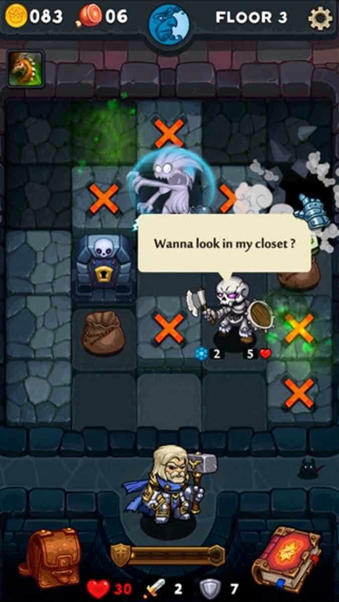 De Dungelot spellen van TinyBuild zijn makkelijk te beschrijven. Bij elk level dat je in dit spel tegenkomt sta je op een grid dat is onderverdeeld in vakjes. Je klikt een vakje aan en je poppetje beweegt naar dit vakje toe. Hier kan dan van alles en nog wat gebeuren. Het is mogelijk dat je een monster tegenkomt waar je tegen moet vechten. Je kunt ook een zak goud tegenkomen, of eten waarmee je de energie van je personage weer kunt aanvullen.
