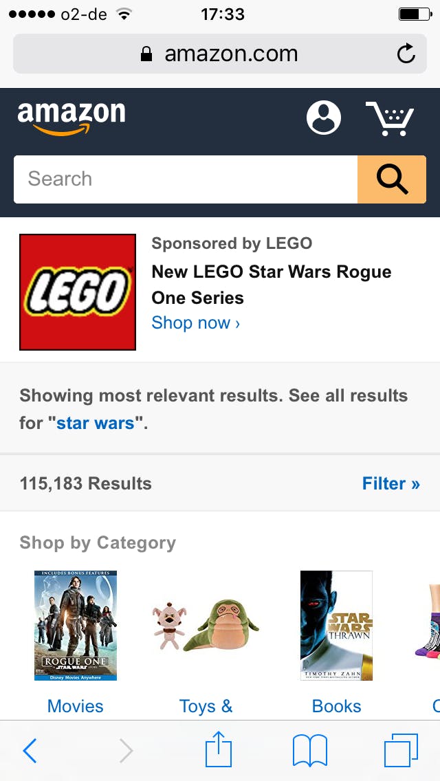 Een geweldige functie van DuckDuckGo is dat je zogenaamde bangs kunt gebruiken. Dit zijn commando's waarmee je meteen een zoekterm op een specifieke website start. Typ bijvoorbeeld !a star wars, de website van Amazon wordt geopend en je ziet alle resultaten van Star Wars.