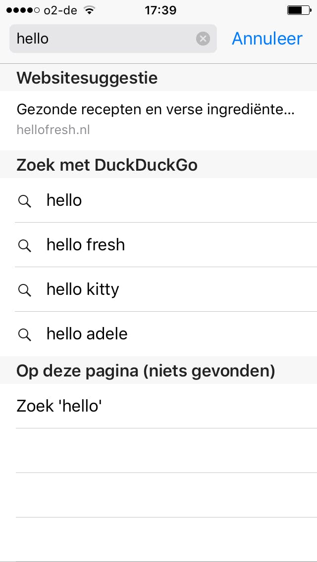 Meer informatie over alle beschikbare bangs vind je op www.duckduckgo.com/bang. De andere opties zijn Yahoo! en Bing. Deze zoekmachines zijn vergelijkbaar met Google wat betreft privacy-opties.