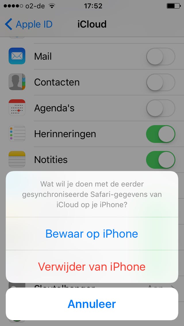 Een andere handig tip is om het delen van Safari-gegevens met andere Apple-apparaten uit te schakelen. Ga naar Instellingen en tik bovenin op je naam. Kies voor iCloud en zet de schuif achter Safari uit. Kies vervolgens wat je wilt doen met gegevens die al naar je iPhone zijn gesynchroniseerd.