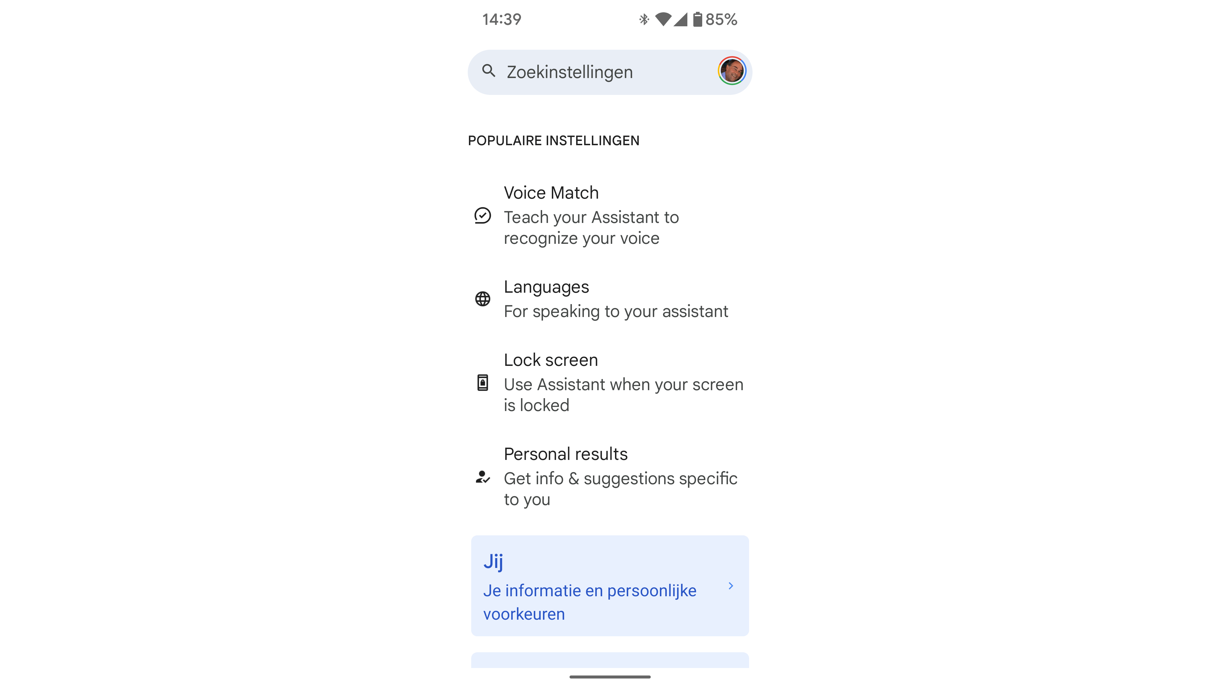 Ga na of alle opties van Google Assistent optimaal zijn ingesteld.