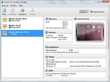 Voor wie VirtualBox een beetje kent, zijn de wijzigingen (die nochtans niet zo talrijk zijn) in de interface onmiddellijk zichtbaar. In het hoofdvenster krijgt u bijvoorbeeld, als u een virtuele machine selecteert, rechts in de eigenschappen een screenshot te zien, met een voorvertoning van wat er zich op dat moment op het scherm van de machine afspeelt. Handig om in één oogopslag te zien of dit de juiste virtuele machine is. Ook praktisch is dat u nu een snelkoppeling kunt maken naar een virtuele machine: rechtsklik op een virtuele machine in het hoofdvenster van VirtualBox en kies Maak een snelkoppeling op het bureaublad. Vanaf nu kunt u de virtuele machine eenvoudig opstarten door op het icoontje op het bureaublad te dubbelklikken.