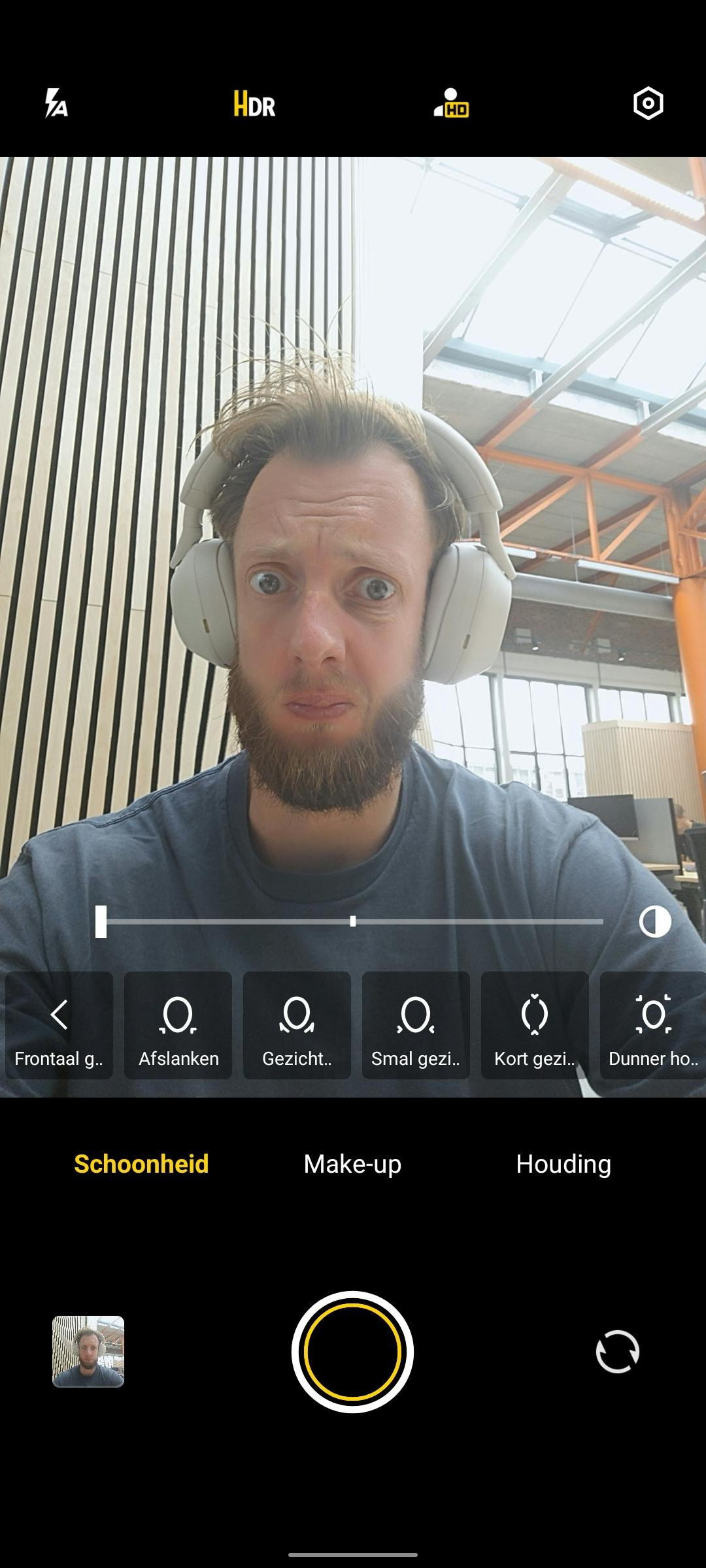 Al die lenzen bieden tal van mogelijkheden en in de app zijn ook fotomodi. Ook hier gaan mijn nekharen overeind staan van de functie die moedervlekken automatisch verwijdert in opnames. Gelukkig staat dit standaard uitgeschakeld. De selfiefunctie van de Vivo smartphone voegt allerlei dubieuze bewerkingen toe. Zo worden poriën gladgestreken en de huid witter gemaakt om beter aan een verknipt schoonheidsideaal uit een andere cultuur te voldoen.