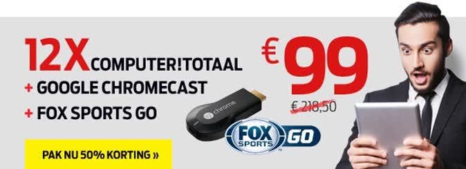 Om live voetbal te kunnen streamen naar je Chromecast heb je een FOX Sports Go-abonnement nodig en de app op je smartphone of tablet (Android, iOS). Je kunt een supervoordelig FOX Sports Go-abonnement en Chromecast krijgen bij een jaarabonnement op Computer!Totaal. Heb je al FOX Sports via je tv-aanbieder, dan kun je je kosteloos aanmelden voor FOX Sports Go. Overigens kun je op FOX Sports niet alleen voor voetbal terecht. Ook American Football (NFL), honkbal (MLB), Formule E, College Basketball en tennis kun je live volgen.