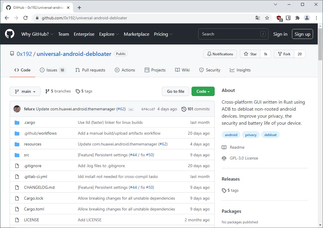 In dit artikel gaan we gebruikmaken van de Universal Android Debloater GUI. De opensource tool is geschreven in de programmeertaal Rust. Het is gebaseerd op een eerder project dat nu is verouderd. Het heeft dezelfde naam, maar met de toevoeging GUI. Daarmee wordt de grafische gebruikersinterface bedoeld die is toegevoegd, zodat je kunt selecteren welke apps uitgezet moeten worden. Het maakt samen met enkele andere verbeteringen het hele proces een stuk gebruiksvriendelijker.