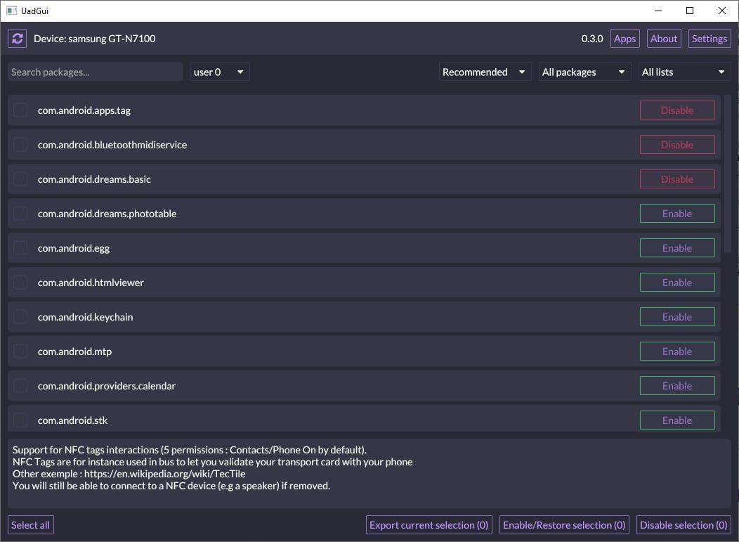 Het meeste werk hebben de ontwikkelaars vermoedelijk gehad aan het maken van een uitgebreide lijst met alle bekende pakketten voor Android, aangevuld met alle informatie die daarover beschikbaar is. Daardoor kun je beter de afweging maken welke apps veilig uitgeschakeld kunnen worden.