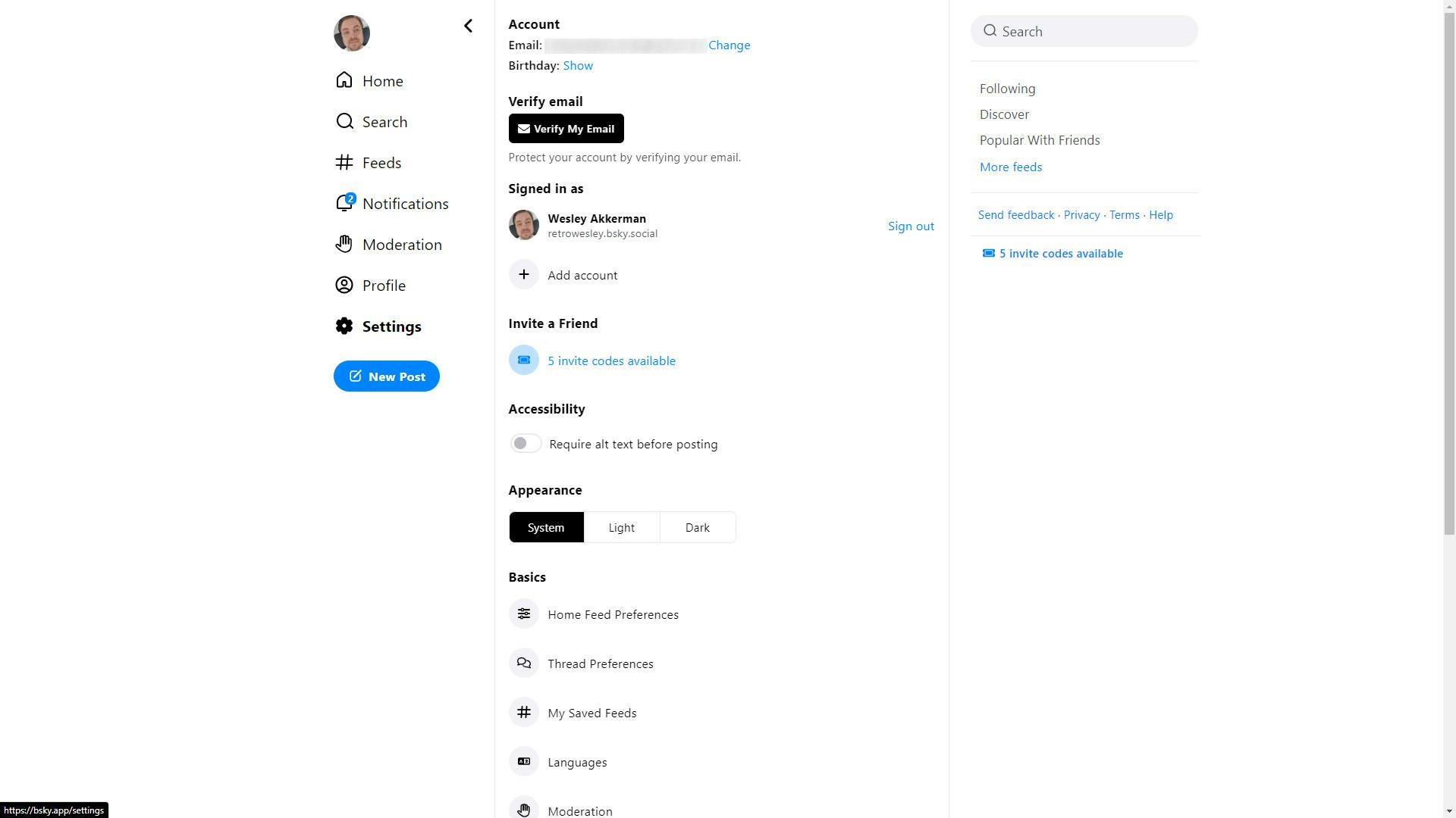 En dan komen we meteen aan bij de vraag waarom het zo lastig kan zijn om überhaupt toegang tot het sociale medium te krijgen. Om de druk enigszins te beperken, kom je alleen binnen wanneer je van iemand een uitnodiging ontvangt. Je kunt een uitnodiging ontvangen van een gebruiker die er eentje over heeft of je plaatst je e-mailadres op de groeiende wachtlijst. Elke gebruiker krijgt elke twee weken één uitnodiging. Mocht je echt niet kunnen wachten, dan kun je misschien kijken of iemand op Reddit nog een uitnodiging heeft (via de subreddit r/blueskyinvites).