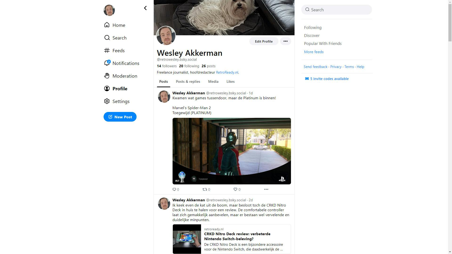 Bluesky dus wel, waardoor je dat platform in elk geval op z’n minst kunt verkennen. In de basis werkt het sociale medium hetzelfde als Twitter. Wanneer je iemands profiel bezoekt, zie je een profielfoto, headerfoto, het aantal volgers, het aantal volgenden en een korte biografie. Je kunt korte berichten van maximaal driehonderd woorden plaatsen en eventueel foto’s toevoegen. Je kunt reageren op andermans berichten en andere gebruikers kunnen berichten op jouw content achterlaten. En verder moet je – vooralsnog – rekening houden met een gebrek aan functies.