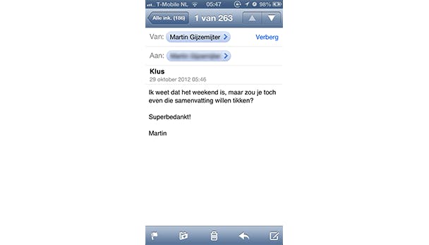 Overigens is het op de meeste smartphones prettiger om e-mail te lezen dan om daadwerkelijk e-mail te versturen. Op een smartphone werk je namelijk met een toetsenbord op het scherm, een virtueel toetsenbord, en dit typt niet altijd even lekker en is foutgevoelig.