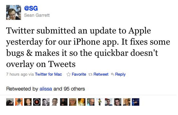 Twitter heeft gisteren de update met aanpassingen naar Apple gestuurd. Het wachten is nu op de goedkeuring (die er hoe dan ook gaat komen) en er zal een nieuwe update van Twitter uitgebracht worden.