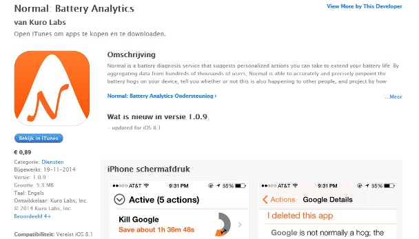 Sinds iOS 8 is het mogelijk om te bekijken welke apps veel stroom verbruiken. Een leuke functie van Apple, maar niet heel uitgebreid. Veel handiger is de app Normal, die je heel uitgebreid laat zien welke apps te boek staan als enorme energieslurpers en ook wat je kunt doen om dat stroomverbruik te minimaliseren. Lees ook: De 15 beste dating-apps voor je iPhone.
