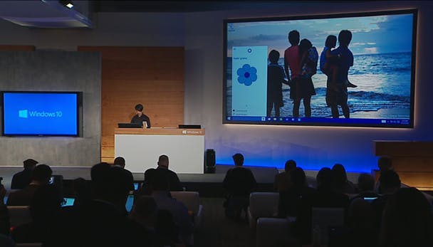Cortana is een slimme assistent en houdt informatie die het over de gebruiker leert bij in een persoonlijk notitieblok. Hierdoor kan Cortana je suggesties geven en weet het sneller waar je naar op zoek bent bij een zoekopdracht. Je kunt de informatie in dit notitieblok zelf inzien en bewerken. Coartana komt naast Engels beschikbaar in andere talen, maar het is onbekend of daar Nederlands tussen zit.