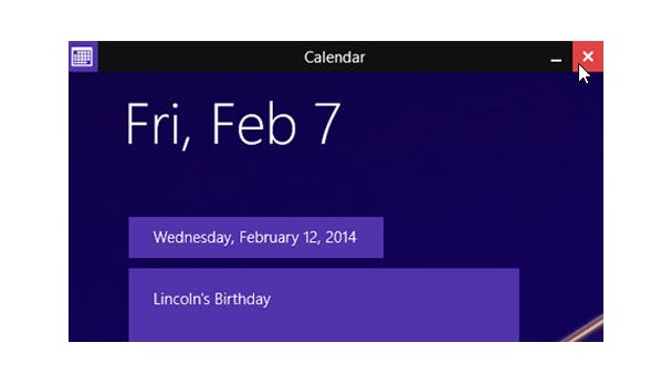 In deze apps is het echter ook mogelijk om bovenin een zwarte balk te krijgen, door met de rechtermuisknop in de linkerbovenhoek te klikken. In deze zwarte balk worden knoppen getoond om de app af te sluiten, splitsen of te minimaliseren. Een handigheidje die het nieuwe startscherm bruikbaarder maakt voor gebruik met de muis.