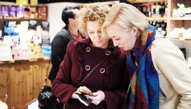 Hoe is het ze bevallen, shoppen met de iPhone? "Het heeft voor- en nadelen", zegt Eva. "We vonden snel en gemakkelijk goede koffie- en lunchtentjes. Zonder iPhone moet je daar soms lang naar zoeken of je komt bij doorsnee-tentjes terecht." De winkel-apps vindt ze vaak rommelig en ook te specifiek. "Je komt in winkeltjes die je normaal niet vindt in een onbekende stad, maar je bent ook veel met je telefoon bezig. Ik wil tijdens het winkelen juist lekker kletsen en om mij heen kijken naar de mensen en etalages." De gouden tip is daarom: "Zoek vooraf welke winkeltjes je leuk lijken. Dan ontdek je de stad, maar behoud je het shopplezier! Na de lunch ging het shoppen veel soepeler."