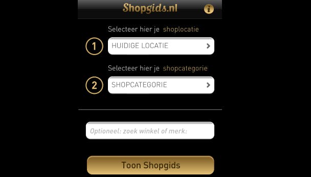 Als laatste openen ze Shopgids, die met zijn zwart-gouden kleuren een beetje en posh-uitstraling heeft. Hij onderscheidt zich van andere apps, want hij heeft veruit de meeste winkels in het bestand en de categorieën zijn veel meer rechttoe-rechtaan: dameskleding, herenschoenen etc. "Hij geeft minder een originele selectie van leuke winkels dan de andere apps, maar is toch wel praktisch", zegt de zwangere Eva. "Als je bijvoorbeeld babykleding nodig hebt, hoef je niet kriskras door de stad te lopen, maar kun je doelgericht zoeken."