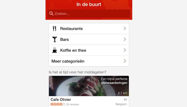 In Yelp kun je helaas niet op lunchgerechten selecteren.