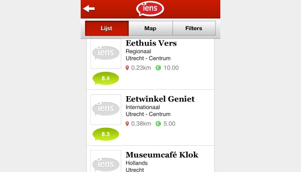In IENS heb je snel een overzicht van locatie, prijs en kwaliteit van het een lunchtentje.