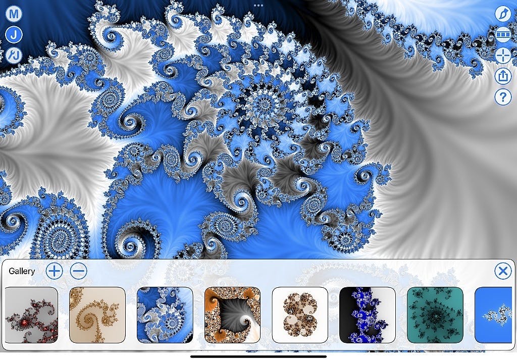Wil je dat, dan ben je een stuk goedkoper uit met de andere apps uit dit artikel. Voor de rest werkt het zonder meer mooi. Kies uit de Julia of Mandelbrot-set middels de J- of M-knop. Naast elkaar zetten kan eveneens middels een klik op de J-knop met daarin ook de moersleutel. Het renderen gaat vlot, maar even snel ‘smooth’ door de fractals zoomen- en scrollen is er dan weer niet bij.