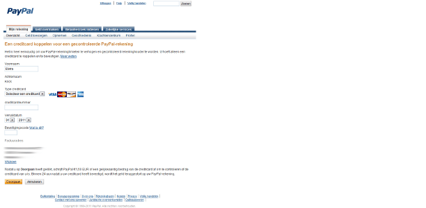 Door een creditcard aan PayPal te koppelen, kunt u al meteen winkelen. In dat geval klikt u in het scherm uit stap 5 op Uw creditkaart koppelen en vult u het kaartnummer, de vervaldatum en het kaartcontrolenummer in. Klik op Uw kaart koppelen en u kunt aan de slag. Overigens kan de creditcard ook gekoppeld worden als vervolgstap nadat u een bankrekening gekoppeld hebt. U mag namelijk beide aan uw PayPal-rekening koppelen. In dat geval zal PayPal in afwachting van goedkeuring van uw bankrekening alle betalingen via de creditcard laten lopen.