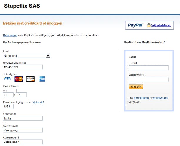 Zelfs als u geen PayPal-account hebt, kunt u van de dienst gebruikmaken. In dat geval meldt u zich niet aan, maar kiest u zodra u naar de PayPal-website bent doorgestuurd voor Betalen met creditcard en vult u alle velden netjes in. De betaling met uw creditcard verloopt nu via PayPal en de webwinkel krijgt uw creditcardgegevens niet te zien. Klik helemaal onderaan op Betaling controleren om over te gaan tot betalen. Met Uw gegevens bij PayPal opslaan dat u er vlak boven vindt, kunt u alsnog snel een PayPal-account aanmaken.