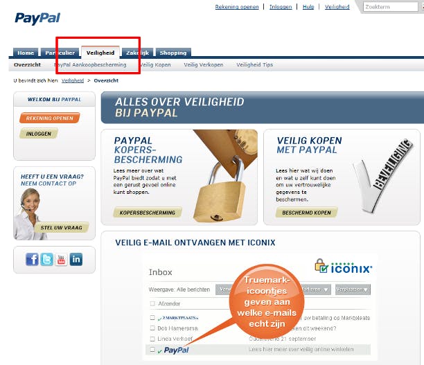 PayPal heeft een Aankoopbescherming die voor extra zekerheid moet zorgen tijdens het winkelen (voorheen Kopersbescherming). Ook op websites zoals Marktplaats en eBay is het van toepassing. Op de PayPal-site vindt u (voordat u zich aanmeldt) op het tabblad Veiligheid informatie en voorwaarden. U vindt er ook nuttige tips over hoe u veilig met uw rekening omgaat en hoe u controleert of u echt met PayPal te maken hebt. Koppelt u een bankrekening, houd er dan rekening mee dat u via PayPal betaalt zonder de extra bescherming van o.a. TAN-codes.