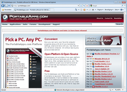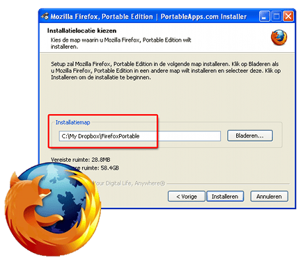 Firefox is vooral vanwege de veelzijdige uitbreidingen (add-ons) een zeer geliefde webbrowser. De draagbare variant doet qua functionaliteit niet onder voor de reguliere versie. Door de browser in uw Dropbox onder te brengen, kunt u Firefox op alle computers gebruiken. Dit heeft vele voordelen. Als u een plug-in installeert of wachtwoord opslaat op uw desktop-pc, zijn deze gegevens ook beschikbaar op uw notebook en omgekeerd. Ook uw bladwijzers zijn nu eindelijk overal hetzelfde! Zoek op Portableapps naar Firefox. De Nederlandstalige versie staat onder Languages.