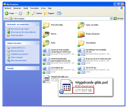 Op elke computer met Dropbox beschikt u over uw documenten en andere bestanden die u opslaat in My Dropbox. De map My Dropbox op uw notebook is dus identiek aan de map My Dropbox op uw desktop-pc én alle andere computers waarop u Dropbox installeert. Zodra u weer online bent, worden wijzigingen verwerkt.
