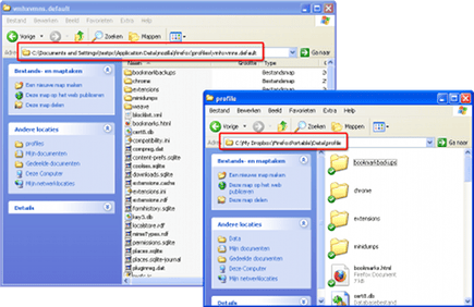 Als u Firefox al gebruikt, kunt u de instellingen, uitbreidingen, wachtwoorden en bladwijzers overzetten. Het kopiëren van de profielmap is vaak voldoende. Gebruik de toetsencombinatie Ctrl+R en geef de opdracht %APPDATA%\Mozilla\Firefox\Profiles. U komt bij een submap met uw profielbestanden. Open deze map en selecteer alle bestanden met Ctrl+A. Kopieer de selectie met Ctrl+C. Open met de Verkenner de profielmap van Firefox Portable: C:\My Dropbox\FirefoxPortable\Data\profile. Kopieer alle bestanden nu naar Firefox Portable via Ctrl+V en overschrijf alles.