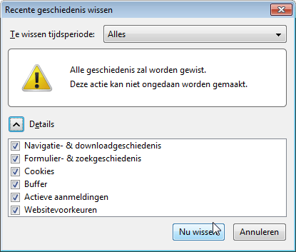 Webbrowsers hebben een olifantengeheugen als het gaat om uw surfgedrag op internet. Naast geschiedenis en cookies blijven ook resten van sites bewaard in de cache. De omvang van deze resten kan behoorlijk oplopen en onnodig veel ruimte van uw Dropbox opslokken. Maak regelmatig uw cache schoon om dit te voorkomen. In Firefox kiest u in het menu Extra voor Recente geschiedenis wissen. In Google Chrome bereikt u hetzelfde via het gereedschapsicoontje, waarna u Opties / Geavanceerde opties / Browsergegevens wissen kiest.