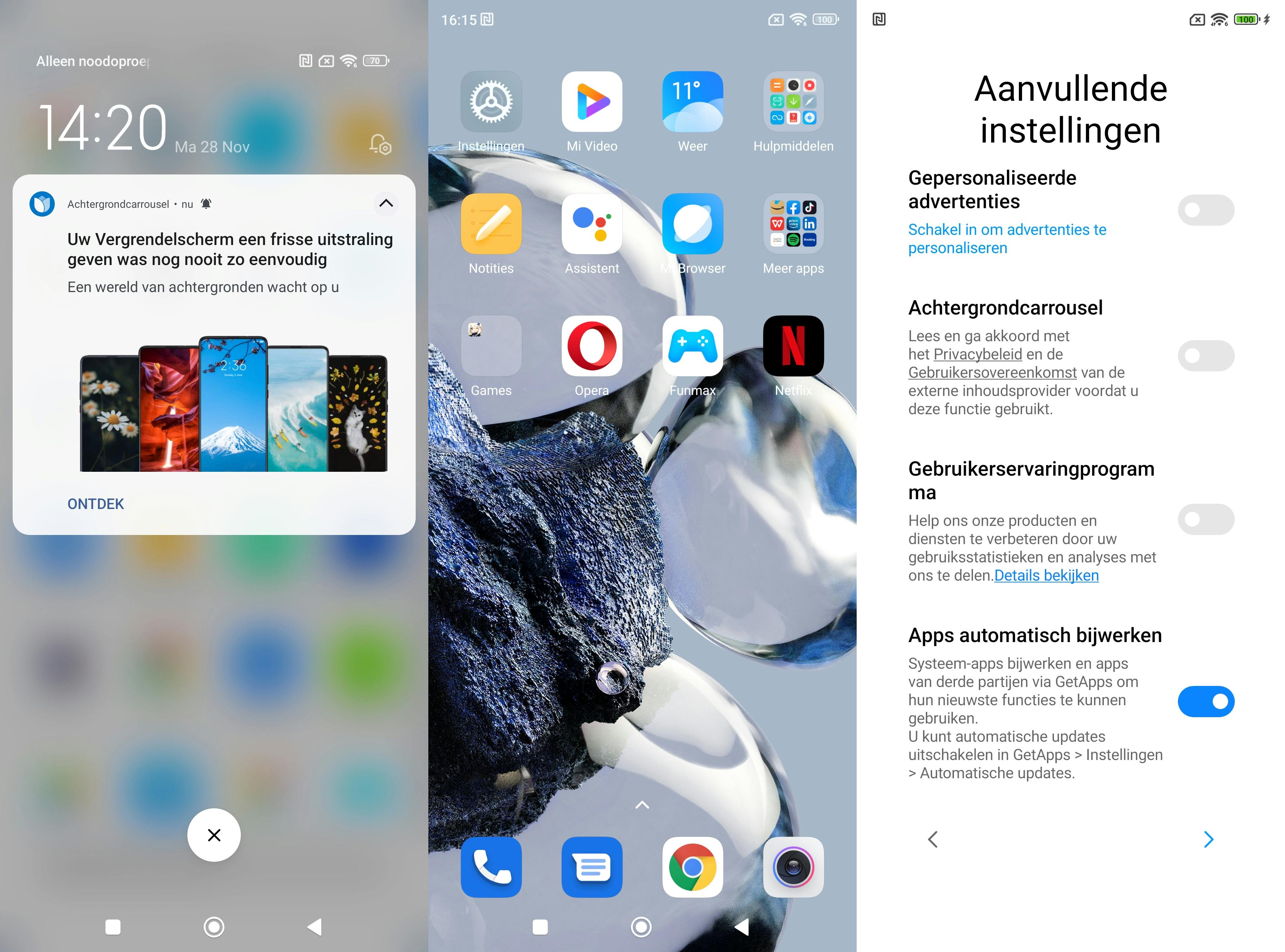 Waar het bij Xiaomi helaas heftig misgaat is de software. De hoeveelheid voorgeïnstalleerde reclame-apps is stuitend. Ook oogt de Android-schil rommelig door kleurgebruik, slechte vertalingen en foutieve uitlijningen. In het meldingenpaneel komen vaak storende notificaties voorbij. Vooral voor de achtergrondcarrousel van Xiaomi voor op het startscherm en vergrendelscherm, waar het bedrijf gesponsorde afbeeldingen in verwerkt. Werkelijk geen één app, dienst of andere wijziging die Xiaomi aanbrengt aan de Android-basis is positief voor jou als gebruiker.