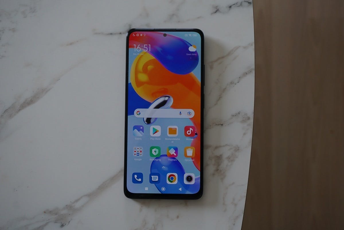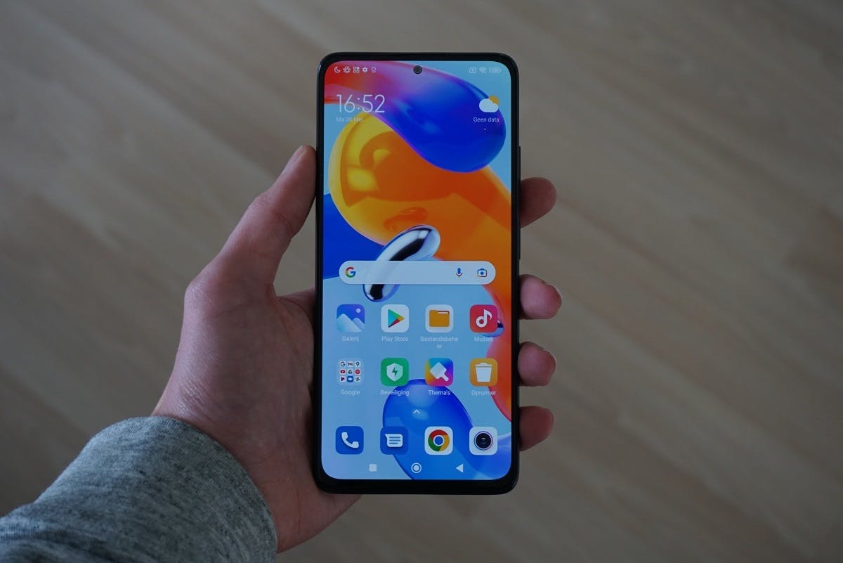 Het 6,67inch-scherm laat ook een goede indruk achter. De grootte moet je liggen, maar de kwaliteit van het display overtuigt. Het beeld oogt scherp dankzij de Full-HD-resolutie en het oled-paneel levert spetterende kleuren en laat zwart echt als zwart zien. Dankzij de 120Hz-verversingssnelheid komt het beeld soepel over. In dit prijssegment is een 120Hz-oled-scherm nog niet gebruikelijk, dus de Redmi Note 11 Pro 5G pakt op dit vlak een pluspunt ten opzichte van sommige concurrenten met een 90Hz-scherm of een lcd-display.