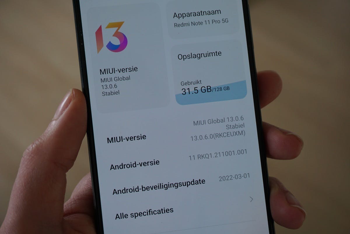 Waar ik wél over wil klagen, is de software. Helaas doe ik dat vaker bij Xiaomi-smartphones. Wat mij op de Redmi Note 11 Pro 5G stoort, is allereerst de keuze voor Android 11 in plaats van Android 12. Veel concurrerende smartphones komen netjes met versie 12 uit 2021, waar Xiaomi kiest voor de Android-versie uit 2020. Een update komt, maar op het einde van mijn testperiode (eind april 2022) is 'ie er nog niet.