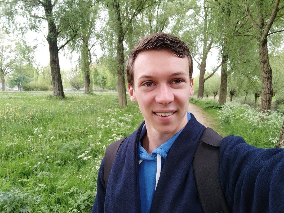 De selfiecamera - 16 megapixel - is kwalitatief prima zonder op te vallen. De belichting op de achtergrond kan wat te fel zijn, maar voor een midrange smartphone is er niets te klagen.