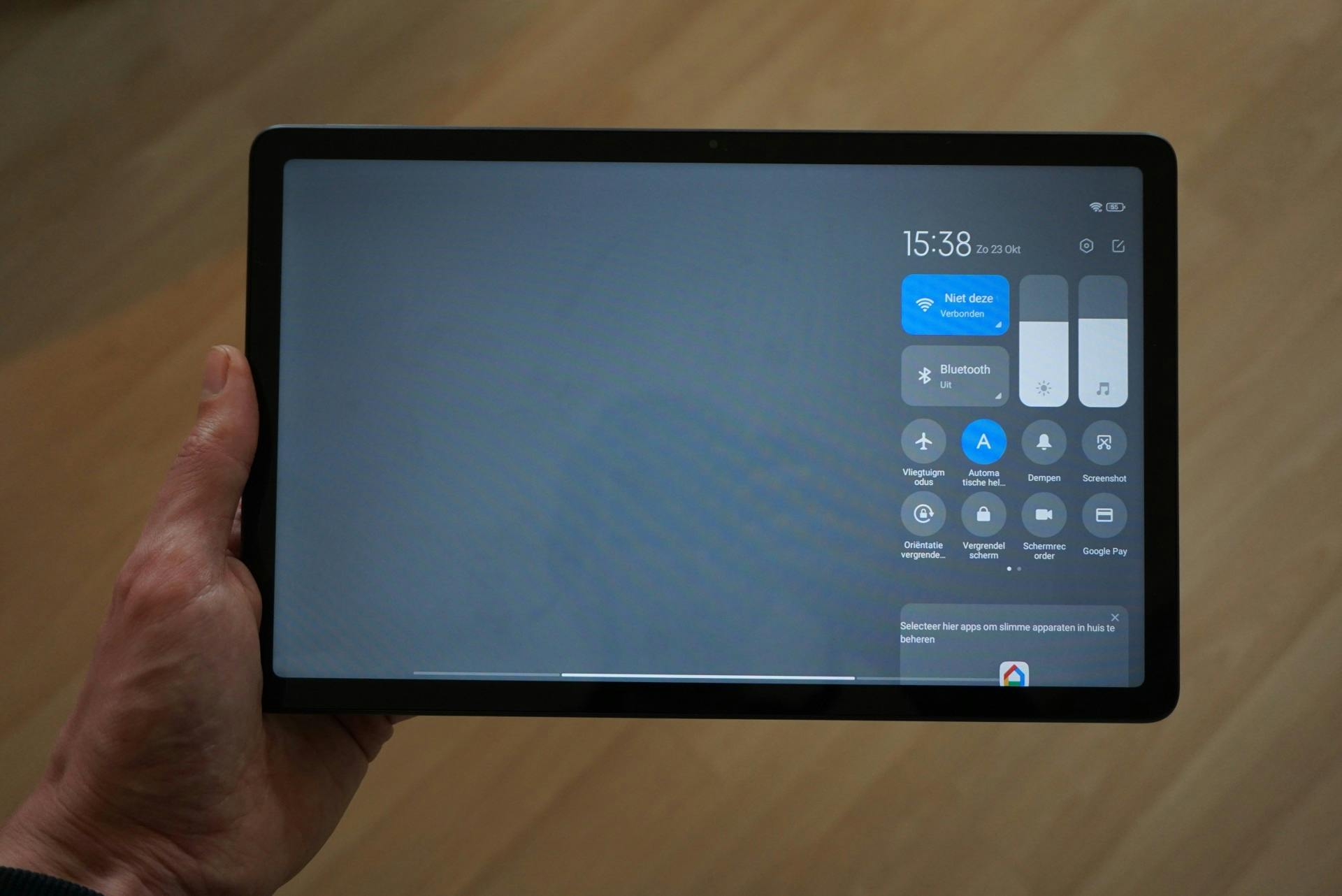 Dat Xiaomi minder ervaring heeft met het ontwikkelen van tablets dan Apple en Samsung, blijkt met name uit de software-ervaring. De Redmi Pad draait op Google’s Android 12 met hier overheen de MIUI 13-schil van Xiaomi. En die schil blinkt uit in onlogische keuzes. Een voorbeeld ter illustratie. Veeg je vanaf de bovenste schermrand naar beneden om het scherm met snelle instellingen te openen, dan wordt het hele scherm grijs met rechts wat instellingen. Sommige icoontjes lijken een instelling, maar doen niets. Het icoontje dat het accupercentage weergeeft, bijvoorbeeld. Klik je op het accu-icoontje dan sluit het snelle instellingen-scherm zich.