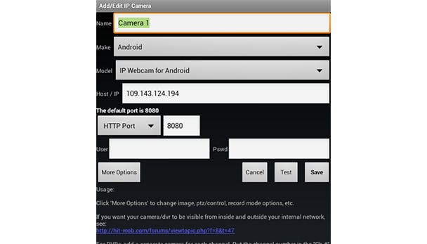 Voeg je Android-telefooncamera aan IP Cam Viewer toe.