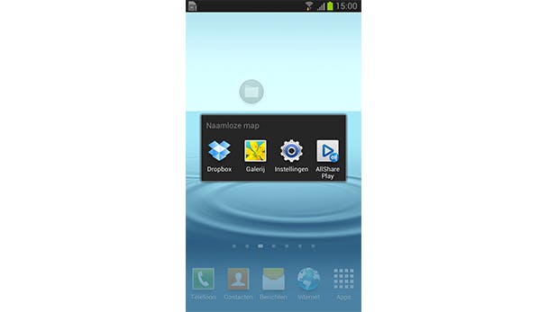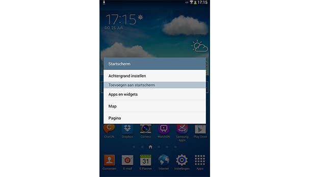 Die saaie blauwe achtergrond mag ook wel een tikje persoonlijker worden gemaakt. Houd hiervoor je vinger ingedrukt op de achtergrond van het startscherm en kies Achtergrond instellen en vervolgens Startscherm. Je kunt nu kiezen uit enkele Samsung-achtergronden (Achtergronden), een gemaakte foto (Galerij) of een bewegende achtergrond (Live achtergronden). Houd er overigens wel rekening mee dat bewegende achtergronden geen positieve invloed hebben op je accuduur.