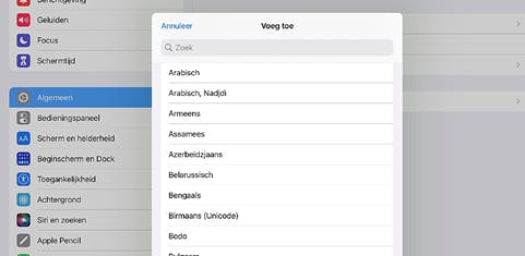 Dit doe je door de app Instellingen te starten. Tik daarin op Algemeen en dan Toetsenbord. Tik dan op Toetsenborden en vervolgens op Voeg toetsenbord toe. Kies uit een van de vele beschikbare talen. Heb je een taal toegevoegd, dan verschijnt deze in het overzicht met beschikbare Toetsenborden.