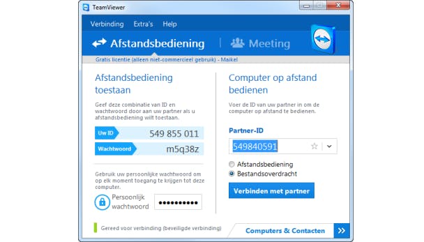Veel programma's en apps die gebruikmaken van het VNC-protocol om pc's op afstand te bedienen, zijn alleen tegen betaling verkrijgbaar. Gelukkig is er met TeamViewer een uitstekend alternatief voorhanden. De gebruikersinterface is volledig Nederlandstalig en je kunt het daarnaast gratis gebruiken. Bezoek deze website en download de volledige versie van het programma naar je pc. Lees ook: Zo print je met een iPad.