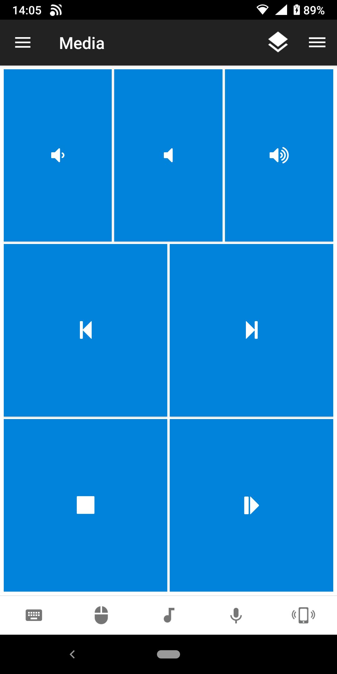 De app toont na het maken van de verbinding direct een zestal afstandsbedieningen, waarvan er vijf in de gratis versie zijn opgenomen. De eerste heet Basic Input, waarmee je van de smartphone een muis en toetsenbord maakt. Veeg je met de vinger over het scherm, dan zie je direct de muis op de pc meebewegen. Tik op het scherm om het indrukken van de linkermuisknop te simuleren, of tik twee keer voor de rechtermuisknop. Om te scrollen kun je met twee vingers over het scherm slepen. Je kunt bij deze afstandsbediening ook een toetsenbord oproepen via een icoontje, zodat je vanaf de smartphone tekst op de pc kunt invoeren. Verder kun je een balk met mediatoetsen oproepen om de muziekspeler te bedienen of het volume te regelen. Dat laatste gaat nog veel makkelijker met de afstandsbediening Media. Die laat in het groot de belangrijkste mediatoetsen zien, zodat je deze comfortabel kunt bedienen. Verder is er nog de afstandsbediening Keyboard, die het hele scherm met een qwertytoetsenbord vult, al werkt die het best als je het toestel horizontaal houdt.