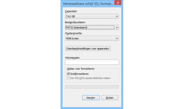 Het NTFS-bestandssysteem weer wel. Kies bij het formatteren daarom altijd voor Bestandssysteem / NTFS tenzij beveiliging niet nodig is of je de stick gaat gebruiken in combinatie met een pc met een oude versie van Windows, zoals Windows 95 of 98.
