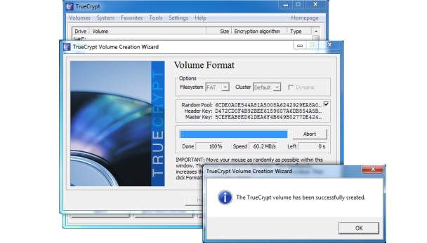 TrueCrypt wil graag dat je een sterk wachtwoord gebruikt dus met hoofdletters, leestekens en cijfers. Dit wachtwoord bewaar je dan weer in KeePass met erbij de naam van het bestand. Je kunt dan voor elke container een ander wachtwoord gebruiken. Klik dan op Next / Format om de container aan te maken. Het versleutelde gebied formatteren duurt langer naarmate de container groter is en kan bij enkele terabytes al snel een paar uur duren.