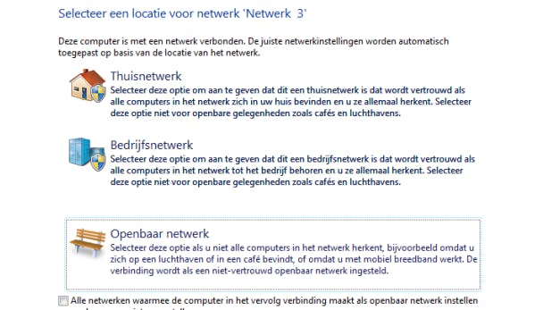Deze netwerklocaties zijn de profielen die de Windows Firewall gebruikt. Zodra je de pc met een nieuw netwerk verbindt, zal het vragen wat voor netwerk het is. Kies dan alleen voor Thuisnetwerk en Bedrijfsnetwerk wanneer je dat netwerk vertrouwt. Kies in alle andere gevallen voor Openbaar netwerk. De firewall is dan extra alert en zorgt ervoor dat anderen in hetzelfde netwerk je pc helemaal niet kunnen zien.